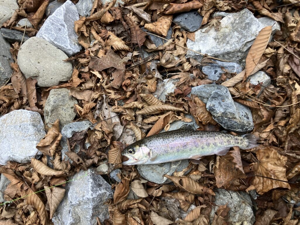 聞けば前日に放流した様です。谷底までバケツで放流してるのでしょうが、本当に頭が下がります。