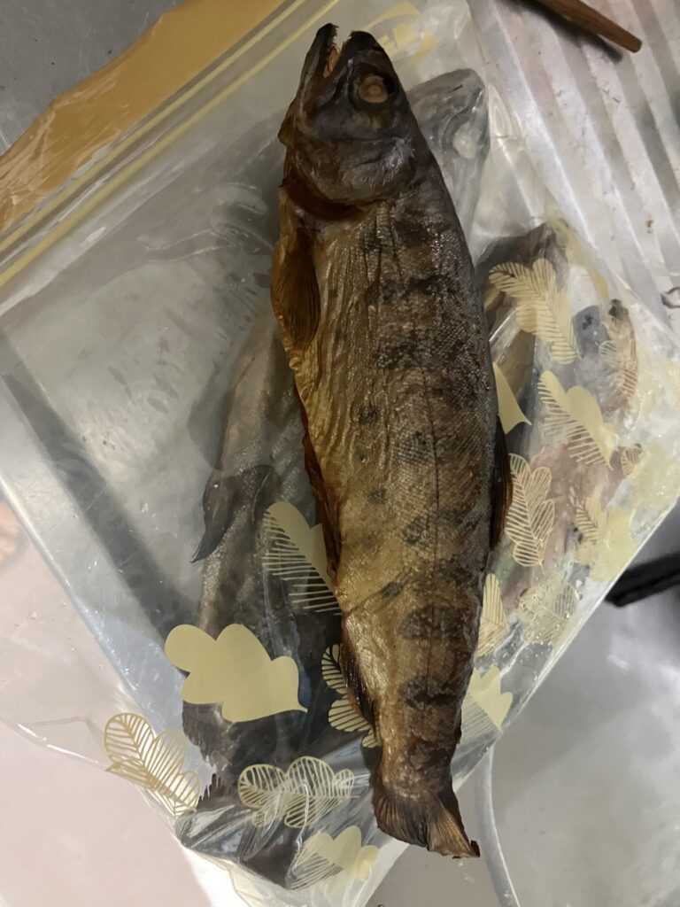 春先は気温、湿度が高くないので解禁日に釣れたヤマメやニジマスは燻製にして食べます。