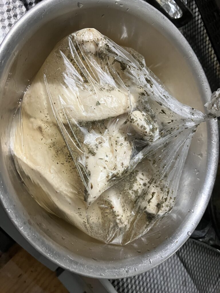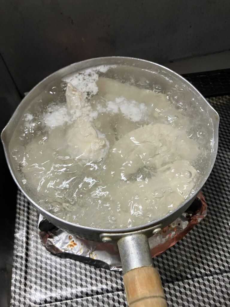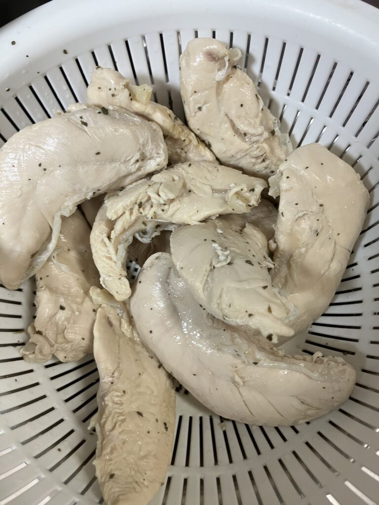 ⑤茹でたササミを一晩〜丸一日漬けます。