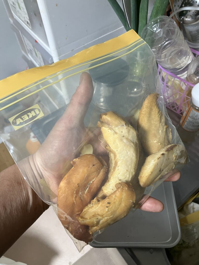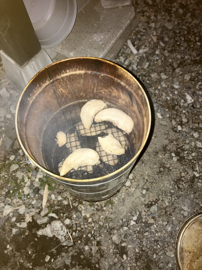 ただ、私は釣った魚をそこまで大量に持ち帰りはしないので、家族の腹を満たす為にヤマメ以外にもスーパーで買ってきた鳥のササミを一緒に燻製する事が多いのです。