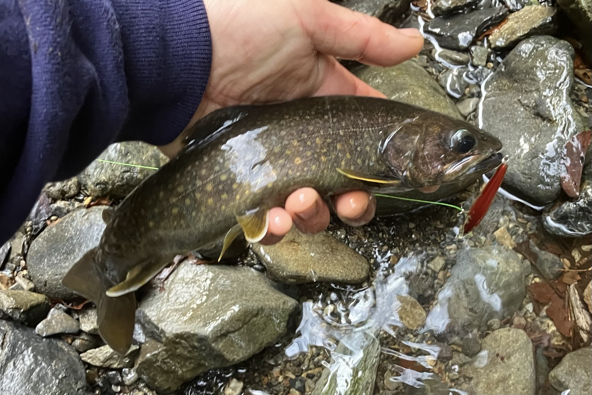 6匹か7匹釣れましたが、釣れるヤマメは20センチ未満。まともなサイズは掛けることができませんでした。