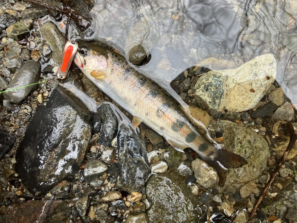 写真を撮ってリリースするとピューっと速攻で流れの中に消えていきました。
