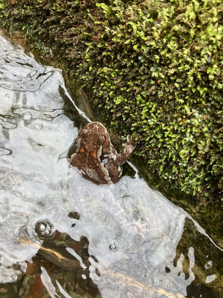 河原にはデカいカエルが沢山。産卵している個体もちらほら。